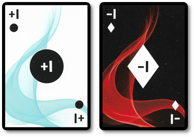 Cards represent negative and positive numbers ranging from 0 to 10 across four suits (circles, diamonds, squares, and, as the Child Geeks like to say, “ninja stars”).