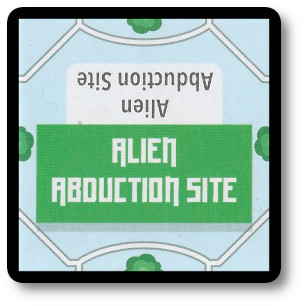 Each Location tile can only be placed to one of the three spaces marked with a Cone. The goal is to put the Location tiles in the Cone area that would best enhance a beautiful city. For example, the available tiles could include an “Alien Abduction Site.” One of the Cones is next to a “Research Lab” Location tile, and another is next to a “Swimming Pool” Location tile. The players decide that the best location for the “Alien Abduction Site” would be by the Research Lab.