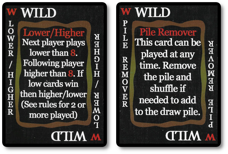 Wild cards can also be played that will change not only the value, but possibly the rules of the game (as described on the Wild card).